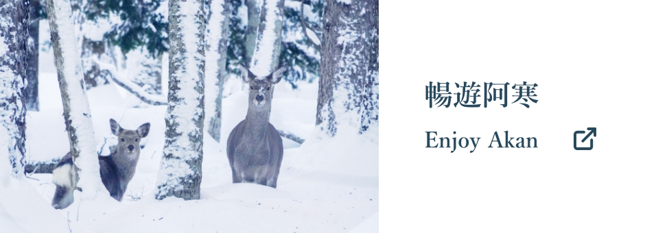 阿寒湖溫泉的住宿樓棟都設在可以步行到湖邊的距離。走上幾步,就能看到銀白色的森林在眼前鋪開,再定睛一看,雪地上還有野生動物來往的痕跡。朝陽燃亮的空氣,夜裡無邊的星空。在這裡,您可以遠離日常喧囂、貼近真實自然,盡情享受阿寒湖之旅。